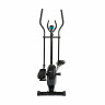 Эллиптический тренажер с задним расположением маховика для домашнего использования. Тренировка на эллиптическом тренажере - это прекрасная альтернатива бегу трусцой или ходьбе, с разницей в высоком сжигании калорий. Благодаря интенсивному движению рук верхние участки тела напрягаются, все тело укрепляется, повышается эффективность тренировки. Среднегабаритная модель с магнитной нагрузкой - система сопротивления с постоянным магнитом и тончайшей настройкой интенсивности. Регулировка нагрузки с помощью ручного привода на стойке тренажера. Консоль с монохромным LCD-дисплеем отображает все необходимые показатели во время тренировки. Измерение пульса осуществляется с помощью встроенных датчиков. Мощная рама тренажера, усиленная конструкция из стального профиля, позволит заниматься пользователю весом до 120 кг. Широкие педали с нескользящей вставкой. Транспортировочные колеса в передней части обеспечивают свободное перемещение тренажера по комнате. Задний стабилизатор с регулировкой положения на неровной поверхности. Показания консоли:   время, расстояние, количество сожженных калорий, скорость, пульс