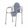 Кресло-туалет 10580CA обладает складной конструкцией на четырех колесах с тормозами. Высота сиденья регулируется. Все элементы (съемное ведро, крышка и поручни) изготовлены из гигиенического пластика. Максимальная нагрузка, которую выдерживает изделие, 115 кг.